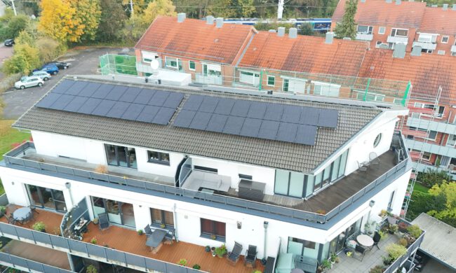 Mit einer 24,34 kWp-Anlage versorgt die BEN in Kiel eine Wohnungsgenossenschaft mit 11 Wohneinheiten mit Solarstrom vom eigenen Dach.
